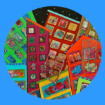 Throughout the many years that I have been creating art, I like to think that my creativity has evolved into “organized chaos”. I started designing handmade, whimsical greeting cards in my 20‘s. Soon after, a trip to Santa Fe introduced me to the look of painted furniture and I realized that I could combine my love for vibrant color and design in pieces which would become the focal point in any room. These commission-based works of art inhabit many homes in Pittsburgh. Combining my past techniques of playful, bold, eclectic art, I began experimenting on canvas which has culminated in my present creations. Using a combination of acrylics, decoupage, found 3-D objects, shadowboxes and miniatures, I’ve been able to throw together all of my art interests in each painting, which begs you to “Come closer” --- “Peek inside”. The common thread throughout each of these paintings is a glimpse into and out of the windows of this unusual, amusing, curious world we live in.